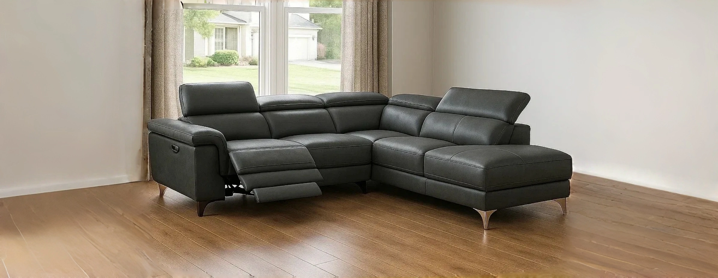 Canapé d'angle modulable en cuir avec repose-pieds inclinable 230x150cm